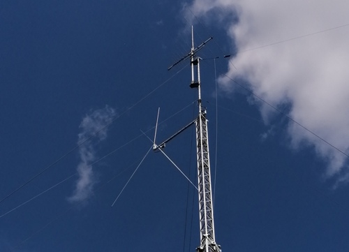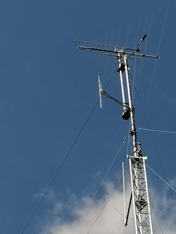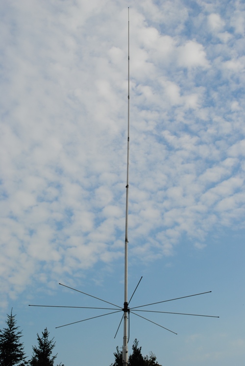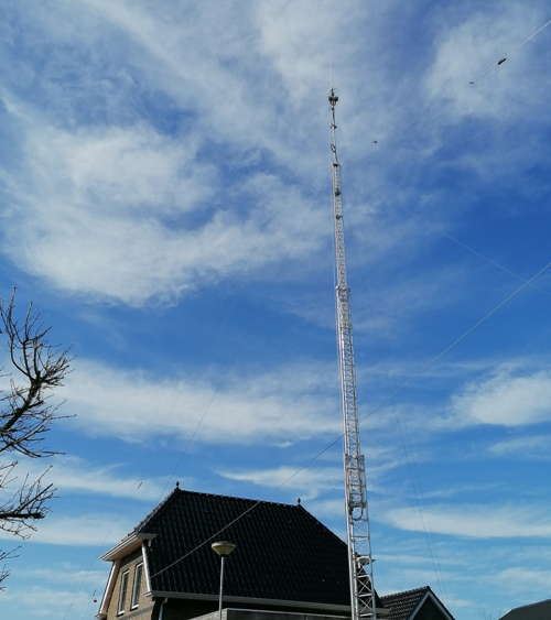 Op 21 meter hoogte zit een ¼ λ Ground Plane voor de 10