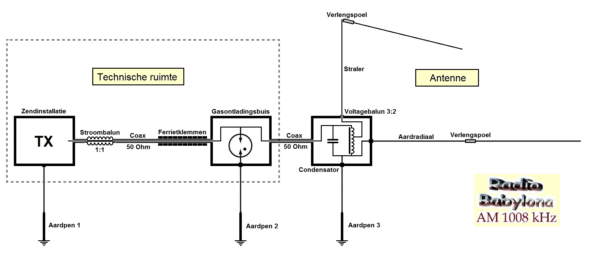 AM 1008 khz met de top op ongeveer 25 meter